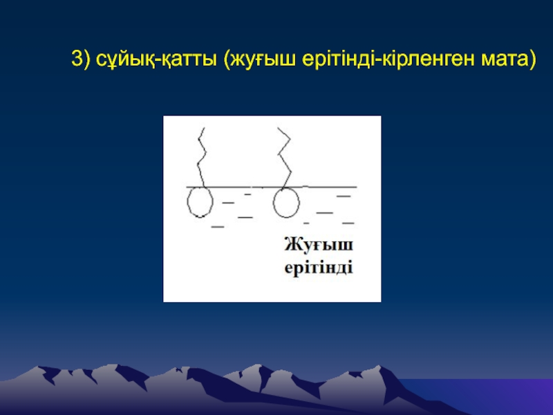 Слайд 53) сұйық-қатты (жуғыш ерітінді-кірленген мата)