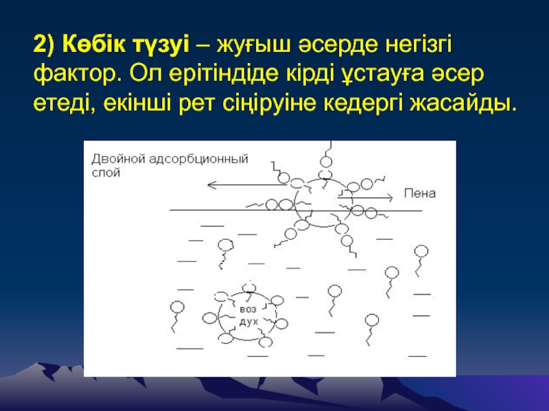 Слайд 152) Көбік түзуі – жуғыш әсерде негізгі фактор. Ол ерітіндіде
