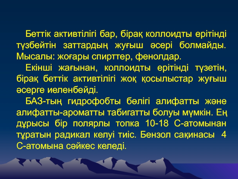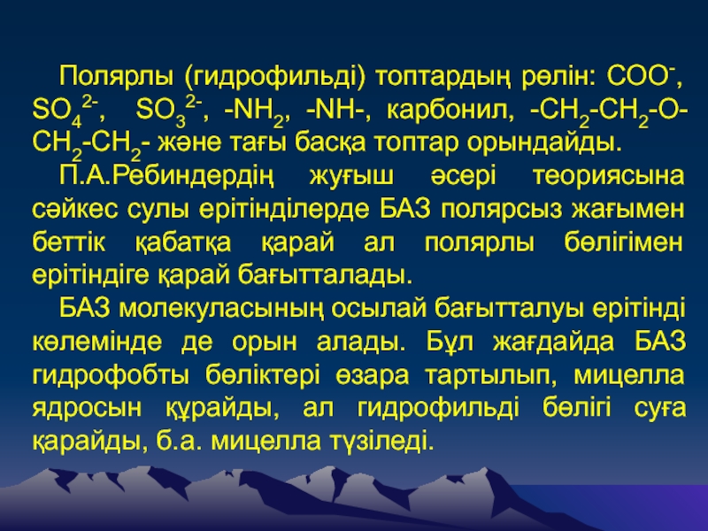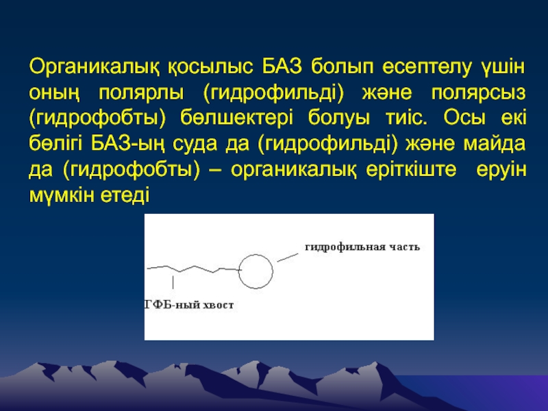 Слайд 3Органикалық қосылыс БАЗ болып есептелу үшін оның полярлы (гидрофильді) және
