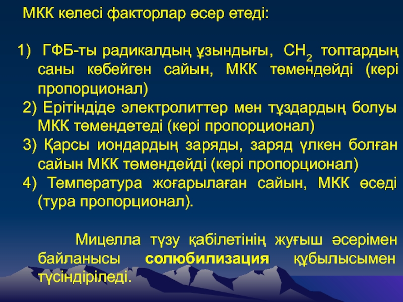 мен тұздардың болуы МКК төмендетеді (кері пропорционал)