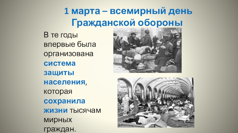 Слайд 14 1 марта – всемирный день Гражданской обороны