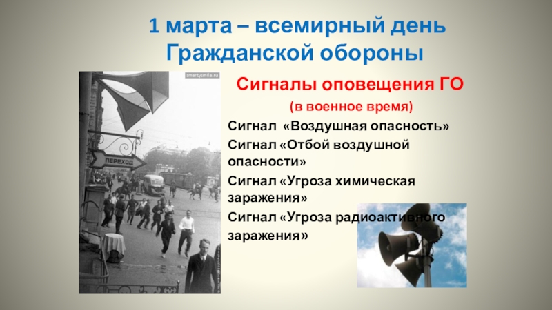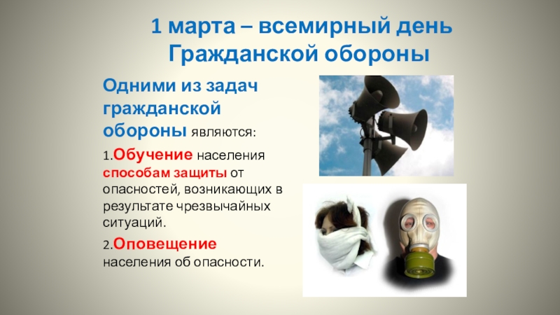 Слайд 13 1 марта – всемирный день Гражданской обороны