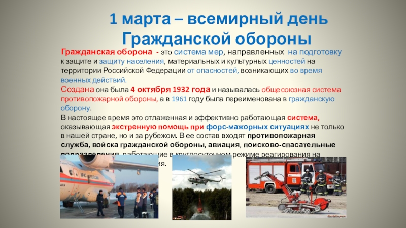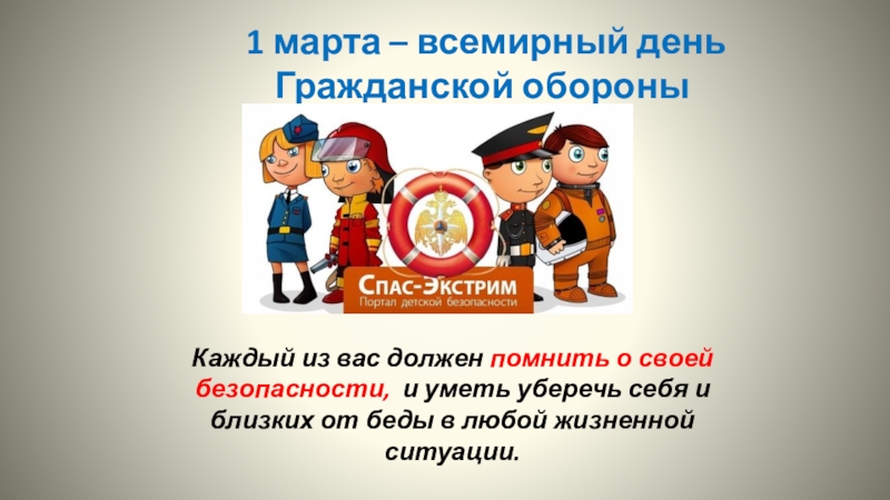 Слайд 4 1 марта – всемирный день Гражданской обороны