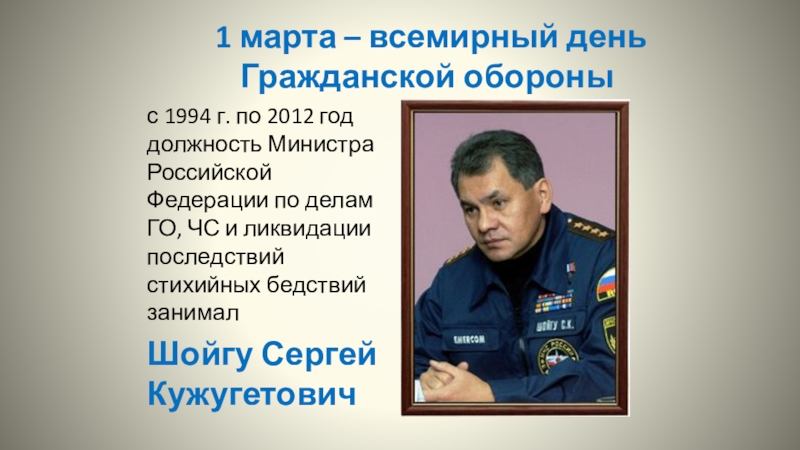Слайд 12 1 марта – всемирный день Гражданской обороны
