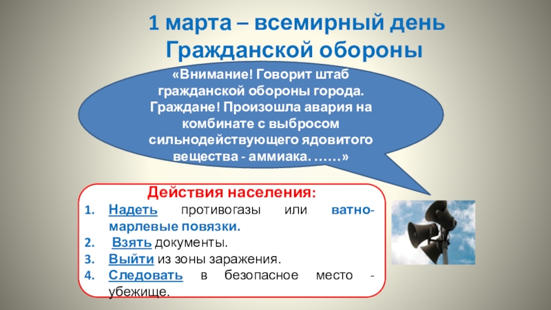 Слайд 16 1 марта – всемирный день Гражданской обороны
