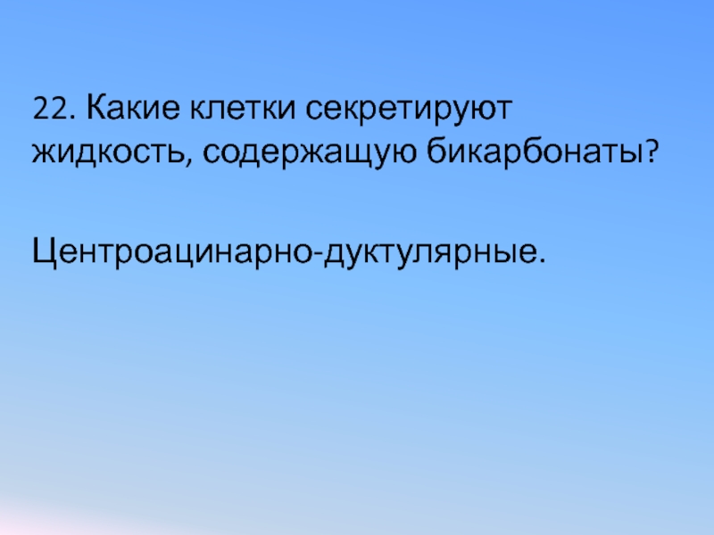 Слайд 2222. Какие клетки секретируют жидкость, содержащую бикарбонаты?