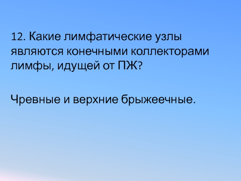 Слайд 1212. Какие лимфатические узлы являются конечными коллекторами лимфы, идущей от