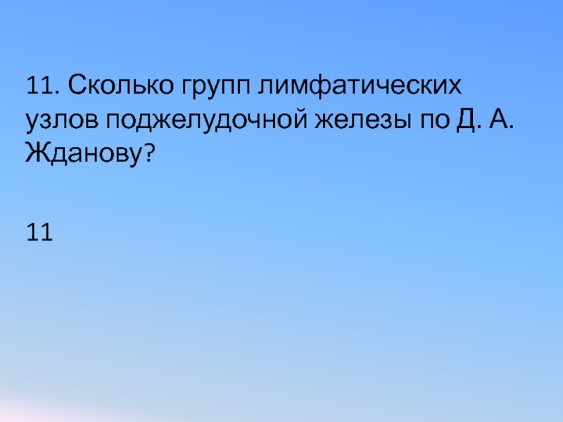 Слайд 1111. Сколько групп лимфатических узлов поджелудочной железы по Д. А.