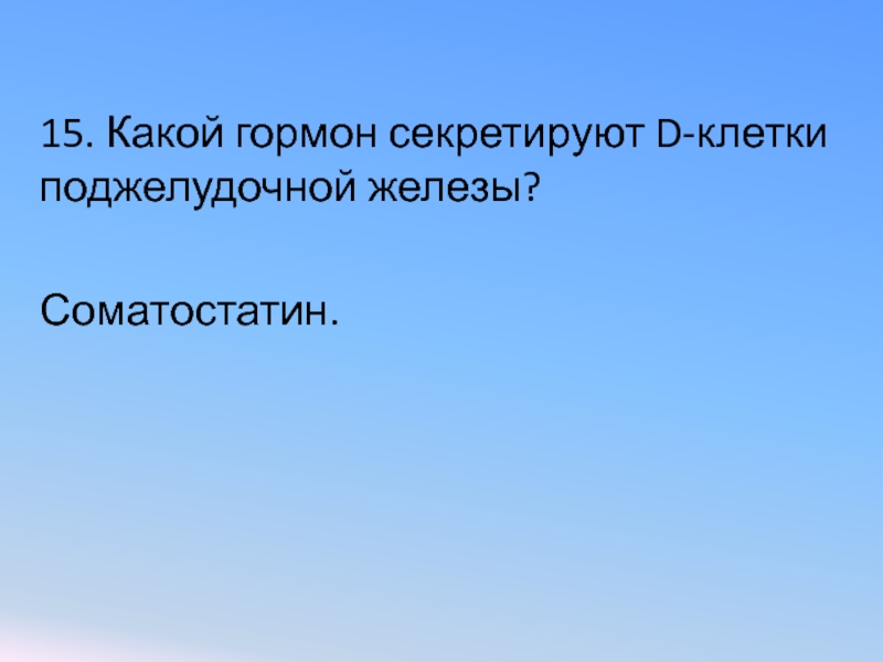 Слайд 1515. Какой гормон секретируют D-клетки поджелудочной железы?