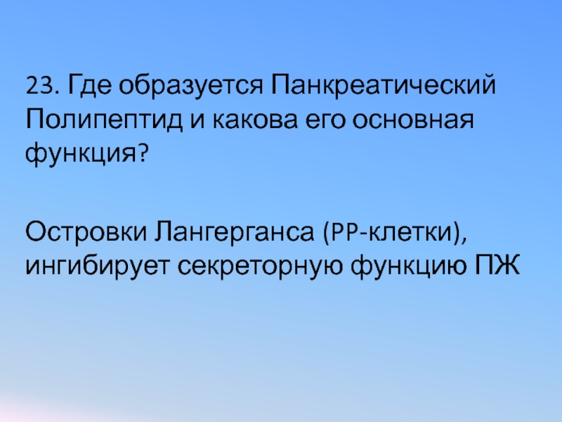 Слайд 2323. Где образуется Панкреатический Полипептид и какова его основная функция?