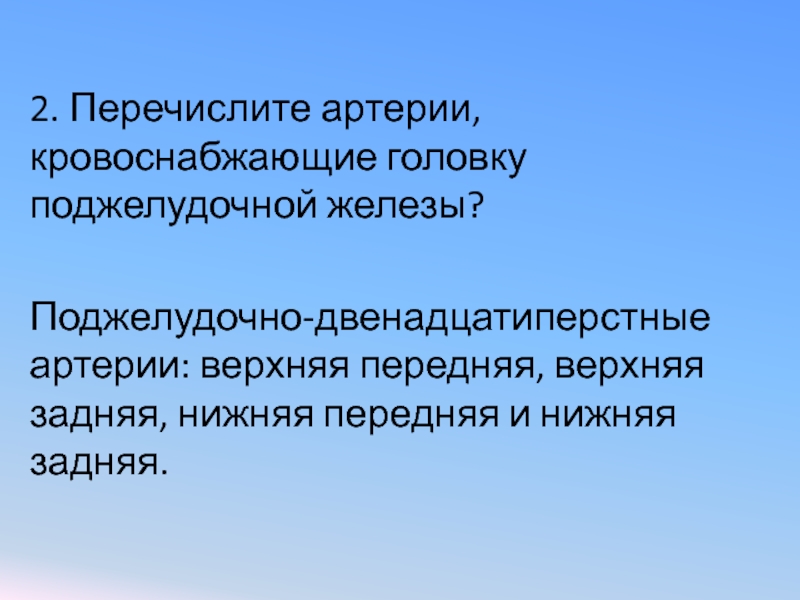 Слайд 22. Перечислите артерии, кровоснабжающие головку поджелудочной железы?