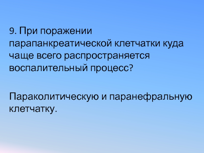 Слайд 99. При поражении парапанкреатической клетчатки куда чаще всего распространяется воспалительный