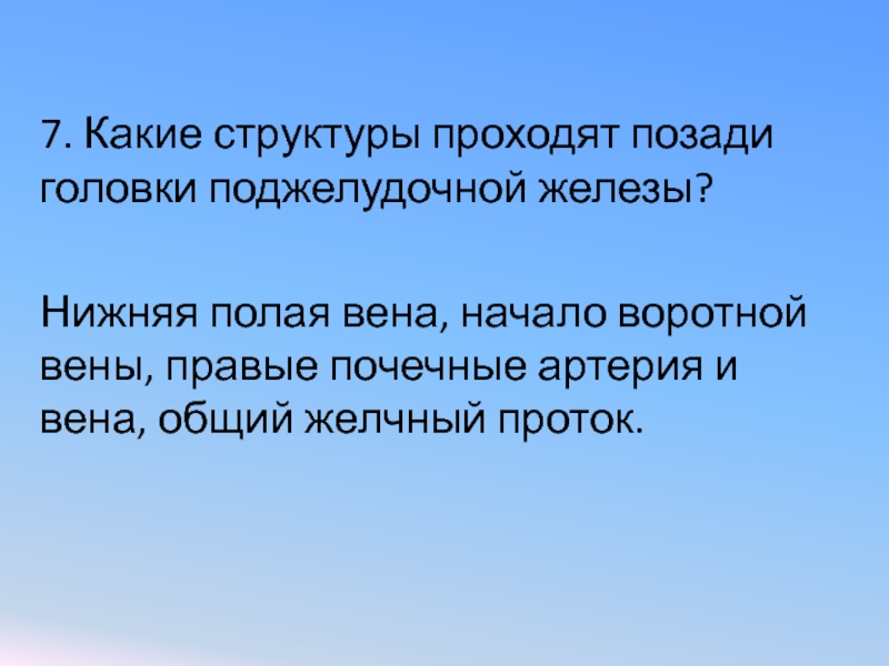 Слайд 77. Какие структуры проходят позади головки поджелудочной железы?