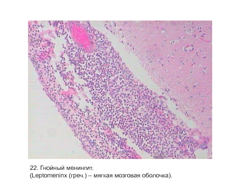 22. Гнойный менингит.(Leptomeninx (греч.) – мягкая мозговая оболочка).