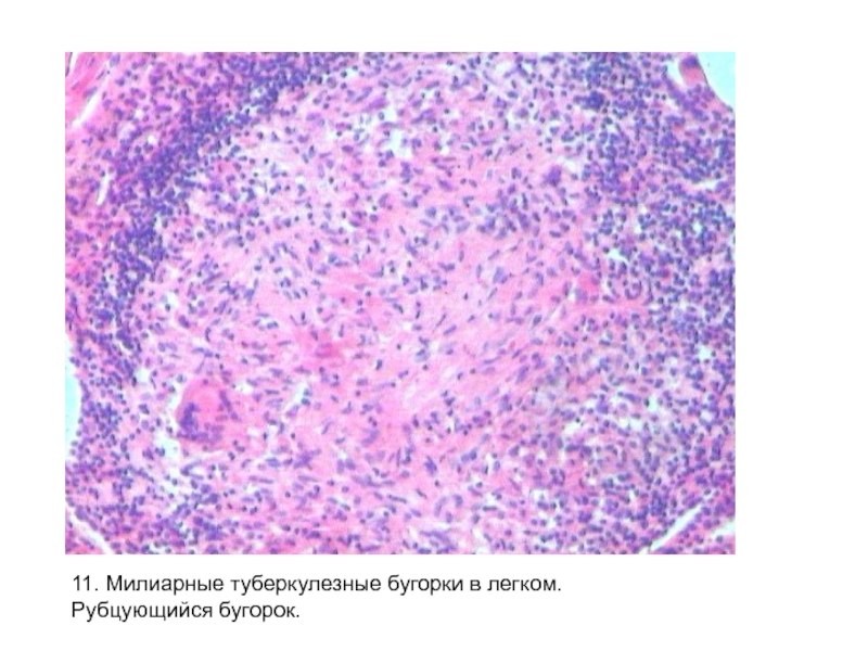 11. Милиарные туберкулезные бугорки в легком.Рубцующийся бугорок.