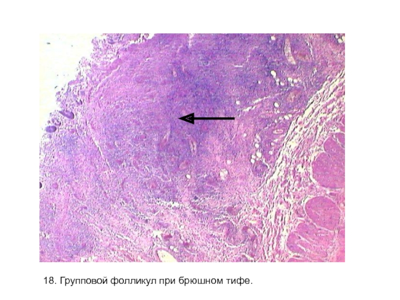 Слайд 2218. Групповой фолликул при брюшном тифе.