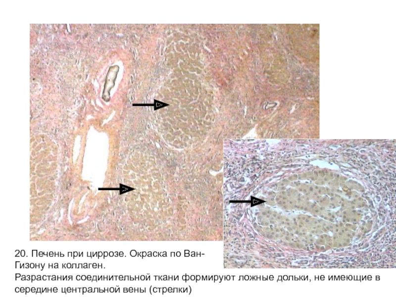 Слайд 2420. Печень при циррозе. Окраска по Ван-