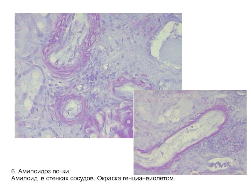 6. Амилоидоз почки.Амилоид в стенках сосудов. Окраска генцианвиолетом.