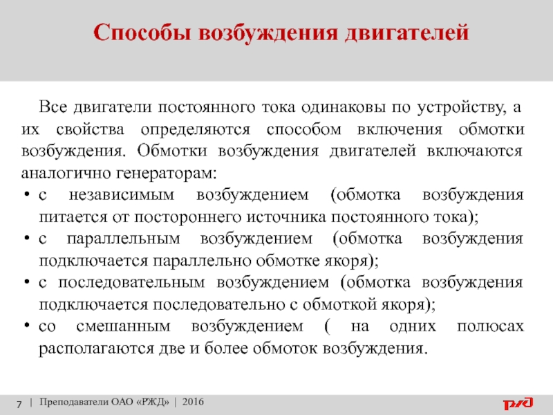 Тема: «Параметры работы и характеристики двигателей разного типа возбуждения применительно