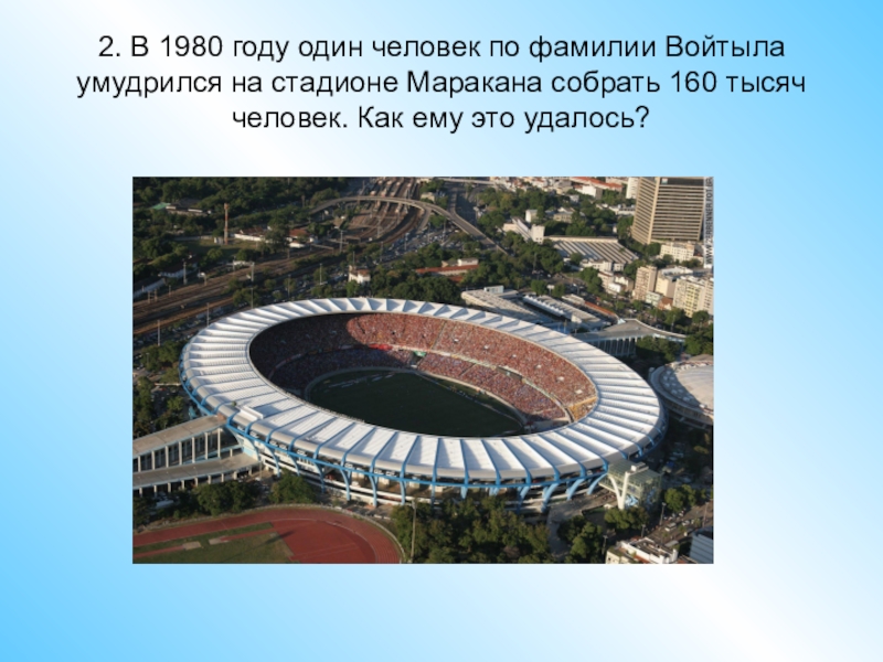 2. В 1980 году один человек по фамилии Войтыла умудрился на стадионе Маракана собрать 160 тысяч человек.