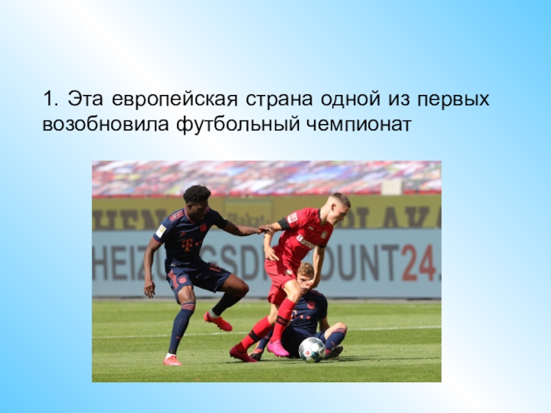 Слайд 141. Эта европейская страна одной из первых возобновила футбольный чемпионат