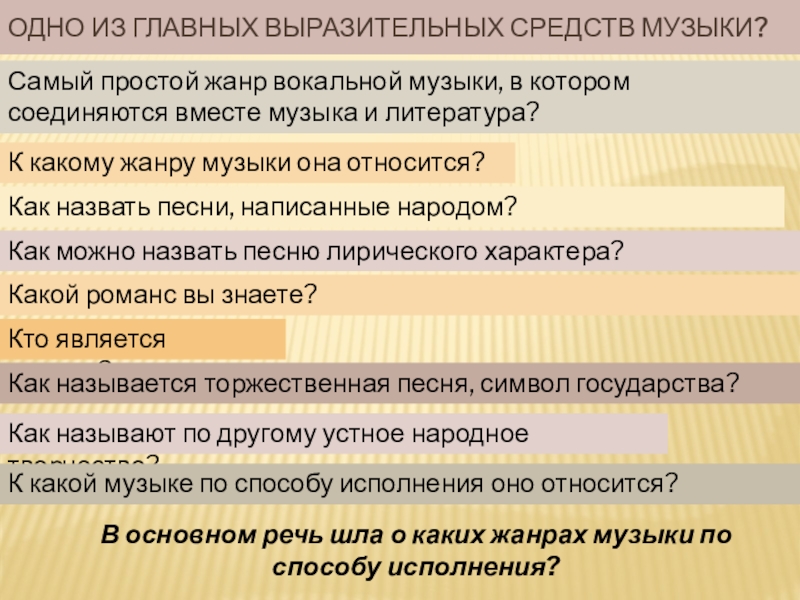 В основном речь шла о каких жанрах музыки по способу исполнения?