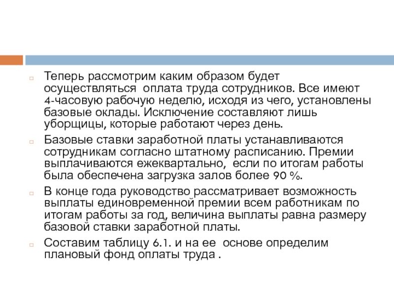 Слайд 13Теперь рассмотрим каким образом будет осуществляться оплата труда сотрудников. Все