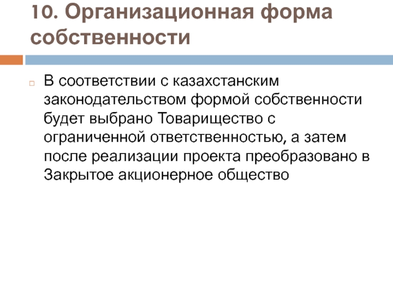 будет выбрано Товарищество с ограниченной ответственностью, а затем после реализации