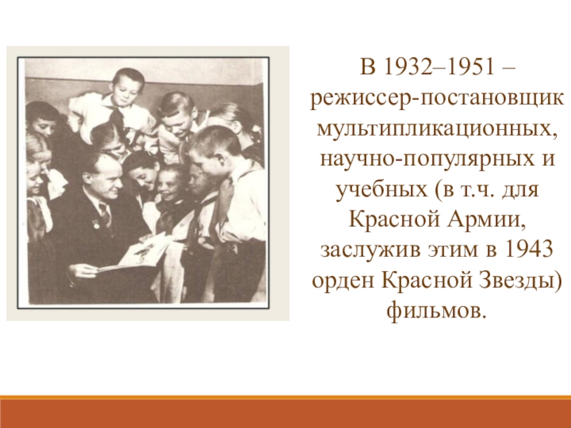 Слайд 6В 1932–1951 – режиссер-постановщик мультипликационных, научно-популярных и учебных (в т.ч.