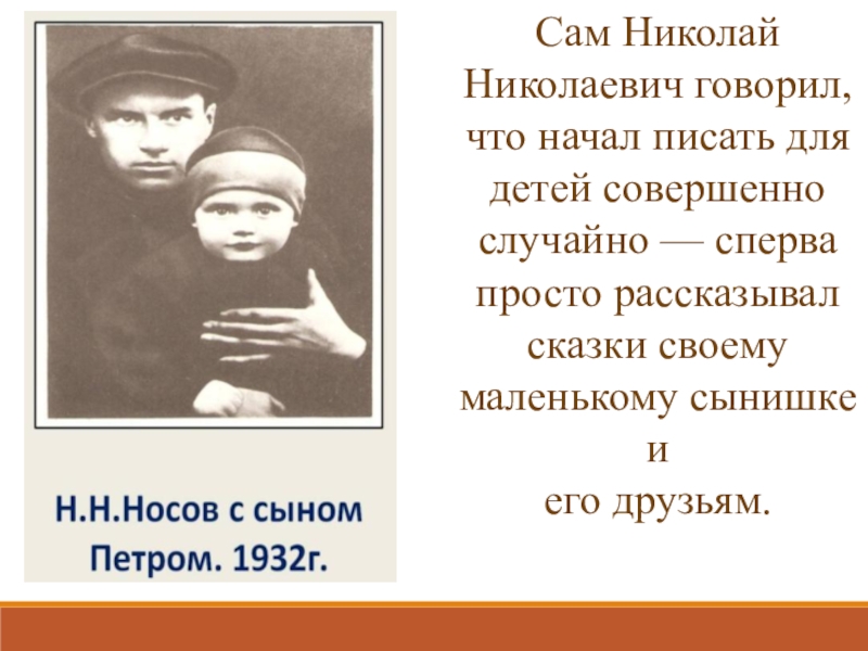 Слайд 7Сам Николай Николаевич говорил, что начал писать для детей совершенно