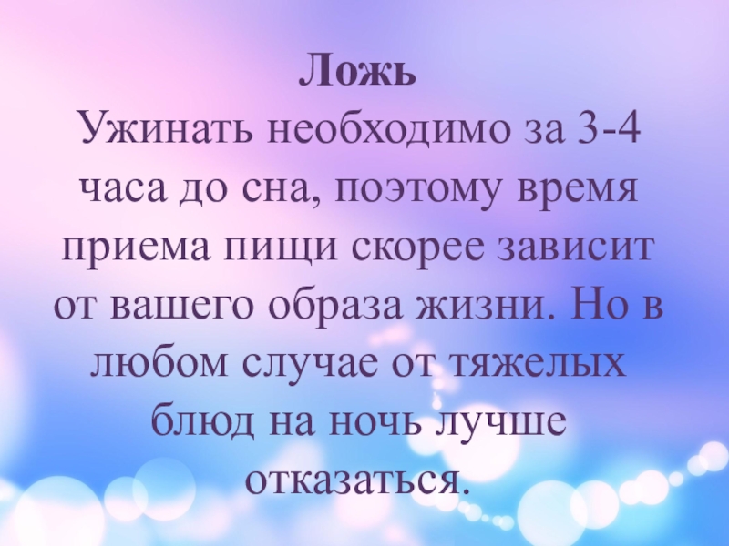 Ужинать необходимо за 3-4 часа до сна, поэтому время приема