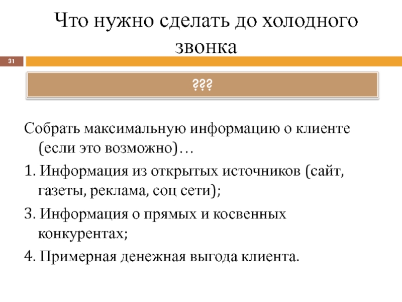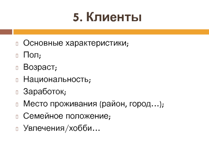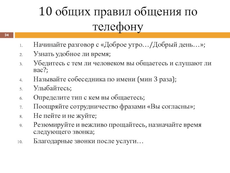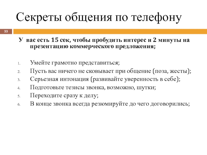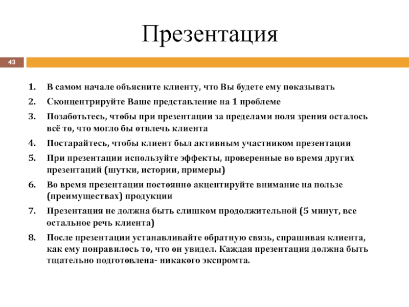 Презентация не должна быть слишком продолжительной (5 минут, все остальное речь клиента)
