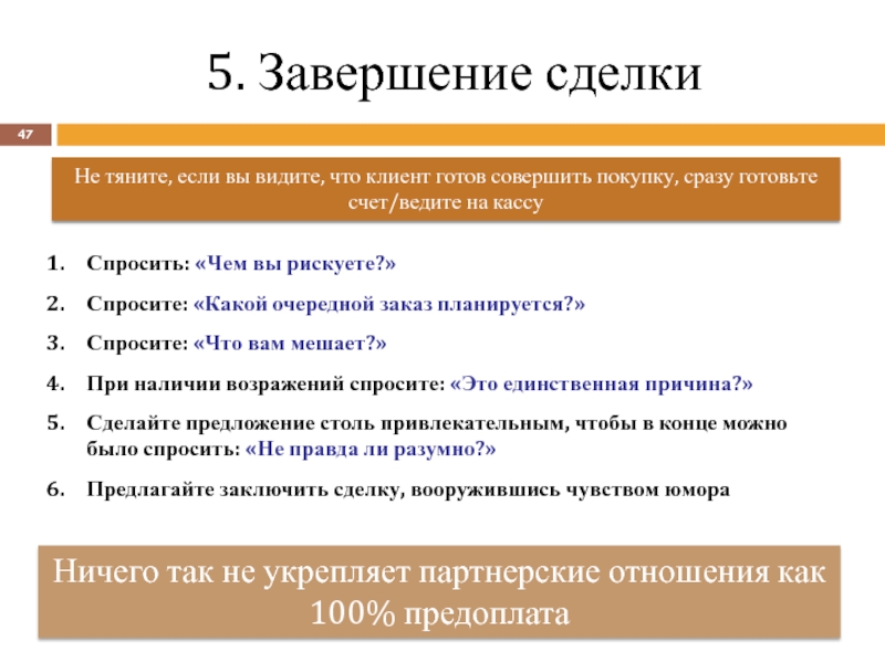 Ничего так не укрепляет партнерские отношения как 100% предоплата