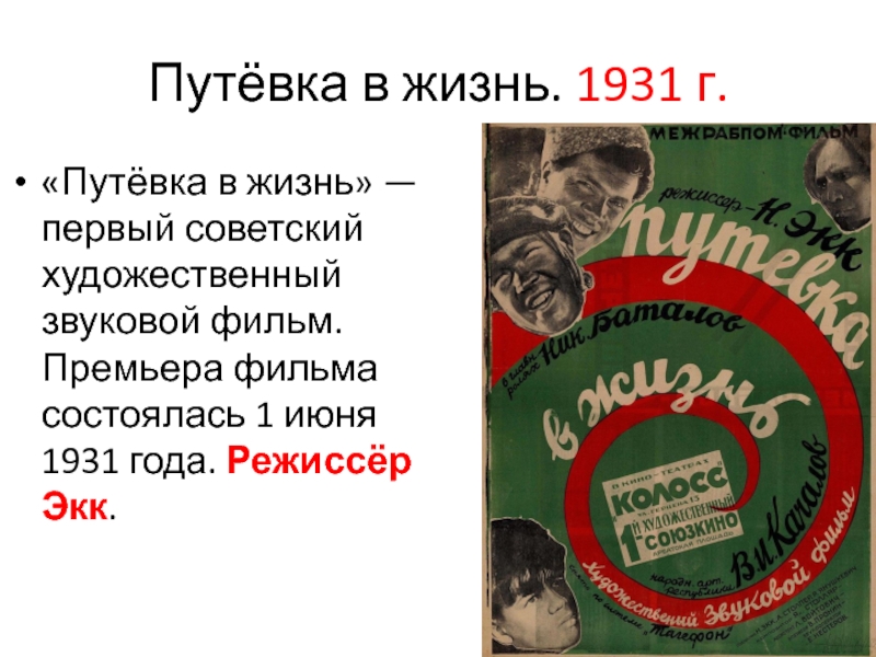 Слайд 107Путёвка в жизнь. 1931 г.