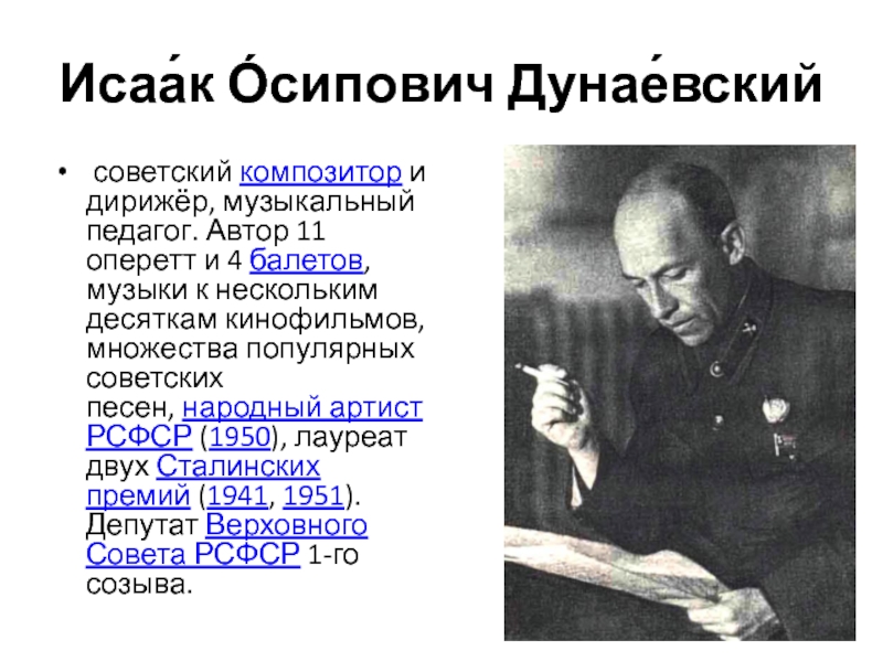 Слайд 102Исаа́к О́сипович Дунае́вский