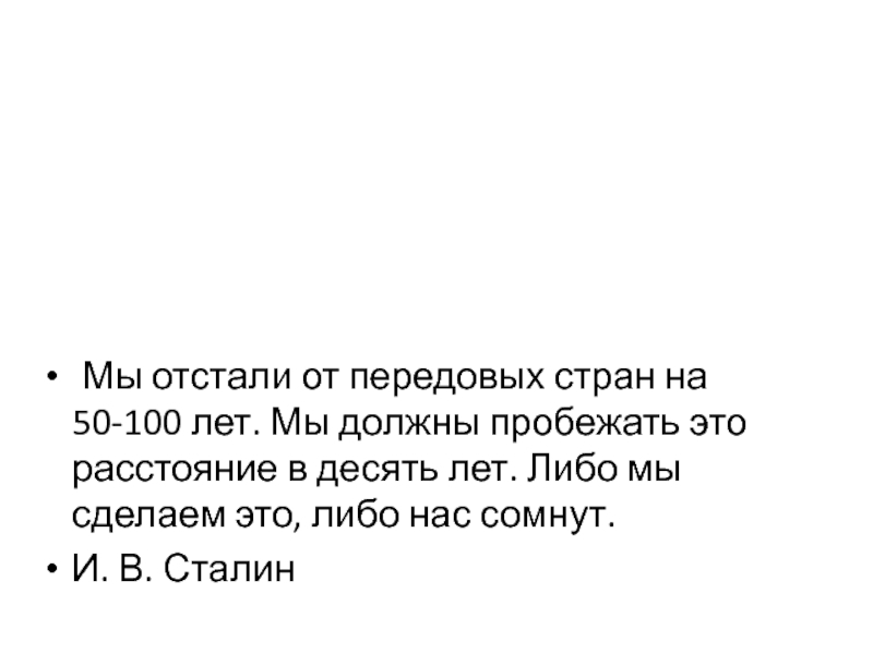 Слайд 20 Мы отстали от передовых стран на 50-100 лет. Мы должны