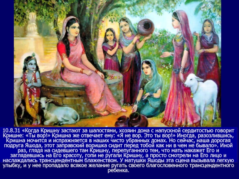 Слайд 2910.8.31 «Когда Кришну застают за шалостями, хозяин дома с напускной