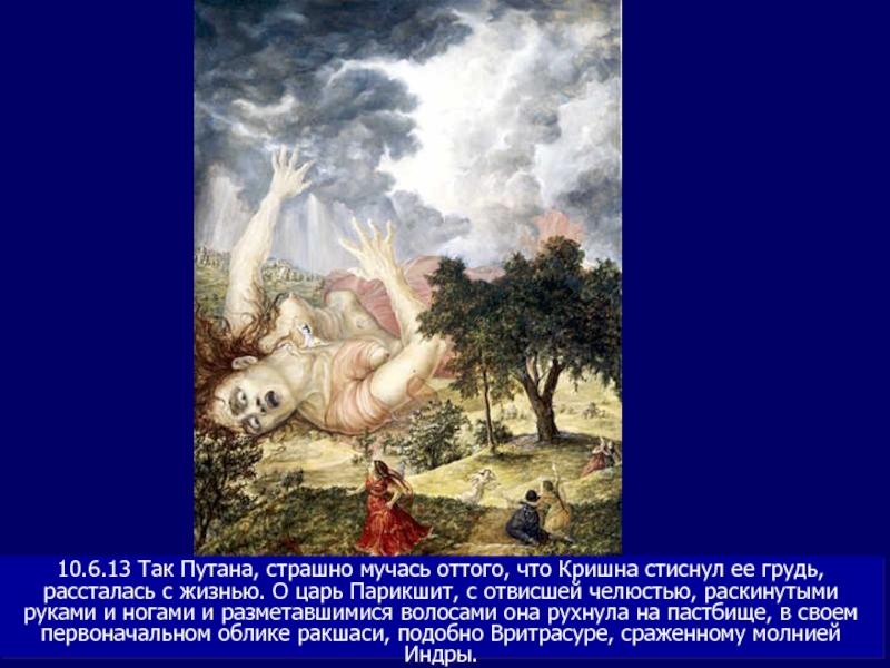 Слайд 910.6.13 Так Путана, страшно мучась оттого, что Кришна стиснул ее