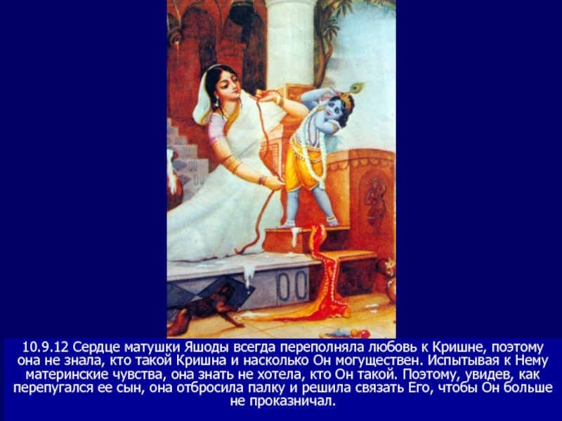 Слайд 3410.9.12 Сердце матушки Яшоды всегда переполняла любовь к Кришне, поэтому