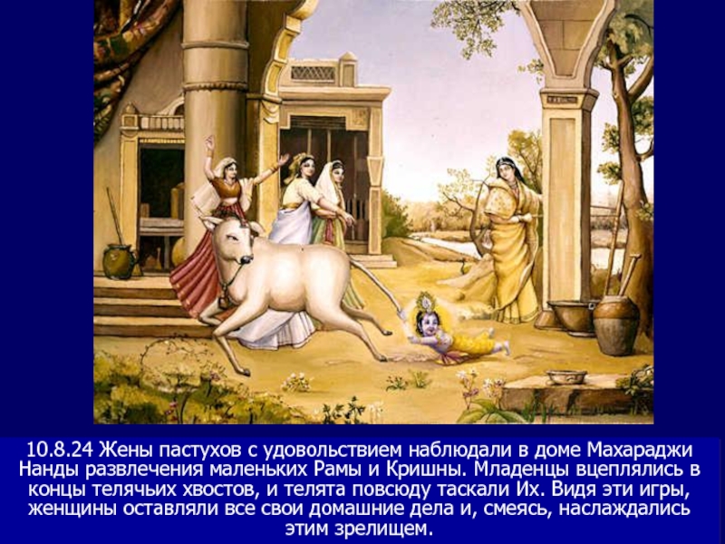 Слайд 2610.8.24 Жены пастухов с удовольствием наблюдали в доме Махараджи Нанды