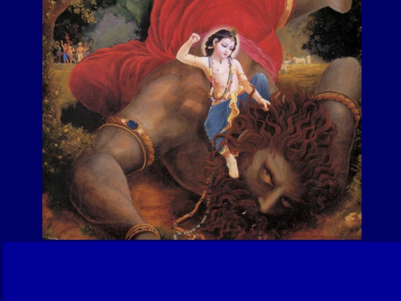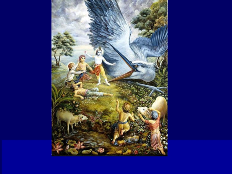 Слайд 4210.11.51 Когда Кришна, предводитель вайшнавов, увидел, что демон Бакасура, друг