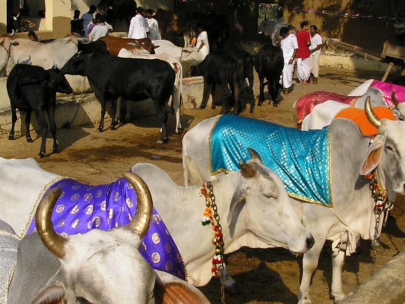 развлечения маленьких Рамы и Кришны. Младенцы вцеплялись в концы телячьих
