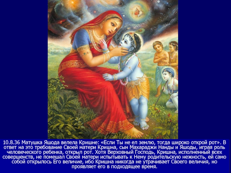 Слайд 2410.8.36 Матушка Яшода велела Кришне: «Если Ты не ел землю,