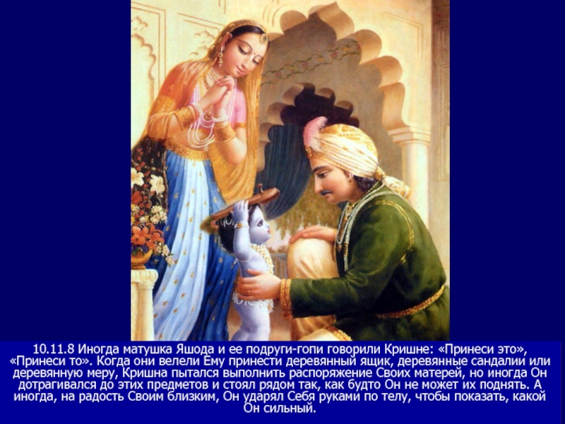 Слайд 1910.11.8 Иногда матушка Яшода и ее подруги-гопи говорили Кришне: «Принеси