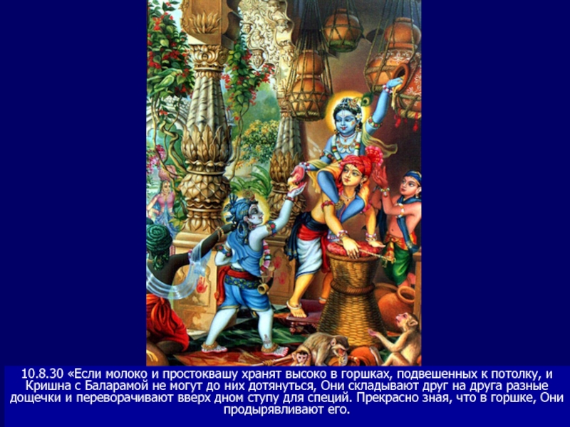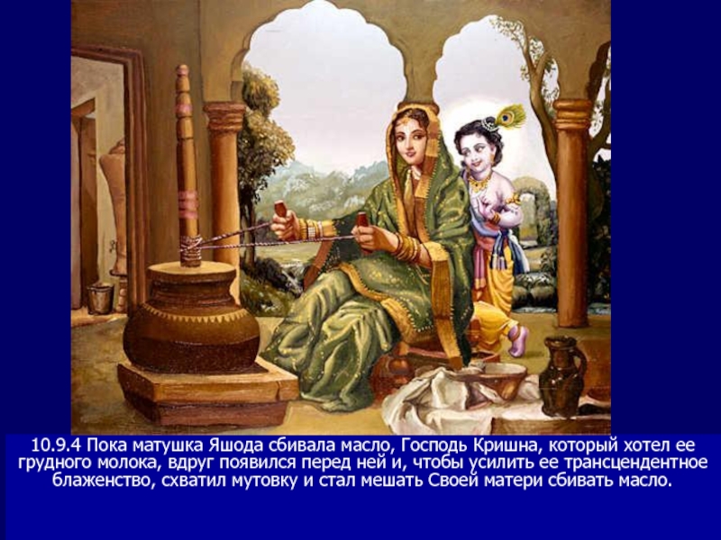 Слайд 3010.9.4 Пока матушка Яшода сбивала масло, Господь Кришна, который хотел