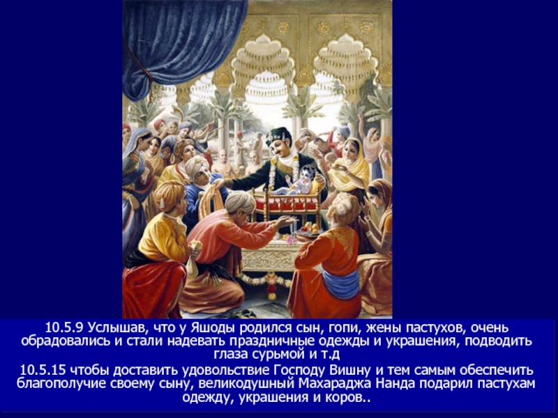Слайд 710.5.9 Услышав, что у Яшоды родился сын, гопи, жены пастухов,