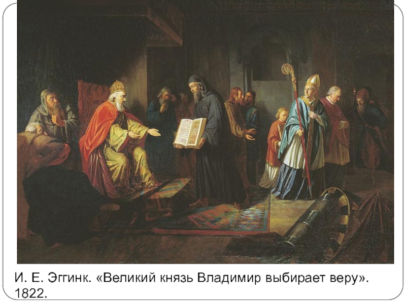 Слайд 16И. Е. Эггинк. «Великий князь Владимир выбирает веру». 1822.