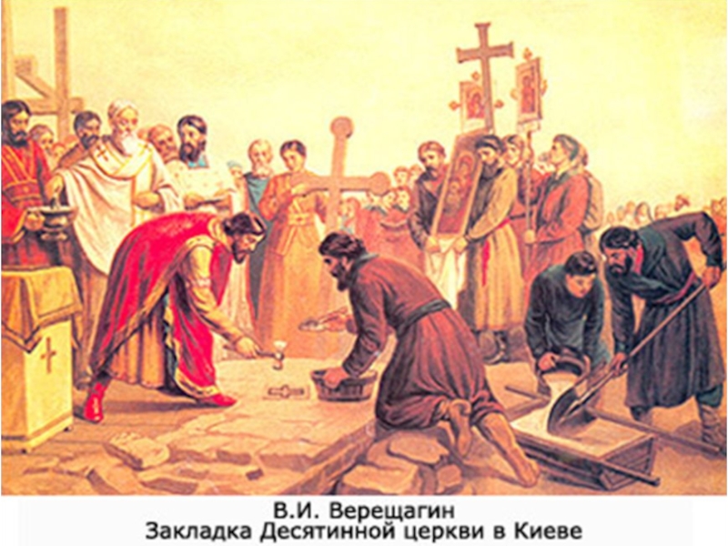 Закладка собора Пресвятой Богородицы (Десятинной церкви) в Киеве в 989 г. Худ. Верещагин   В. П.