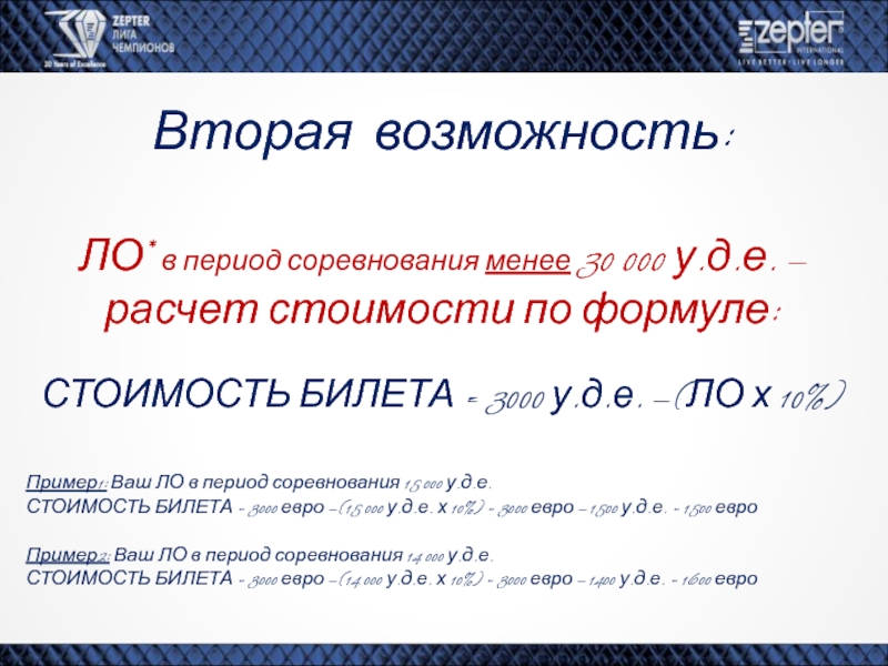 СТОИМОСТЬ БИЛЕТА = 3000 у.д.е. – (ЛО