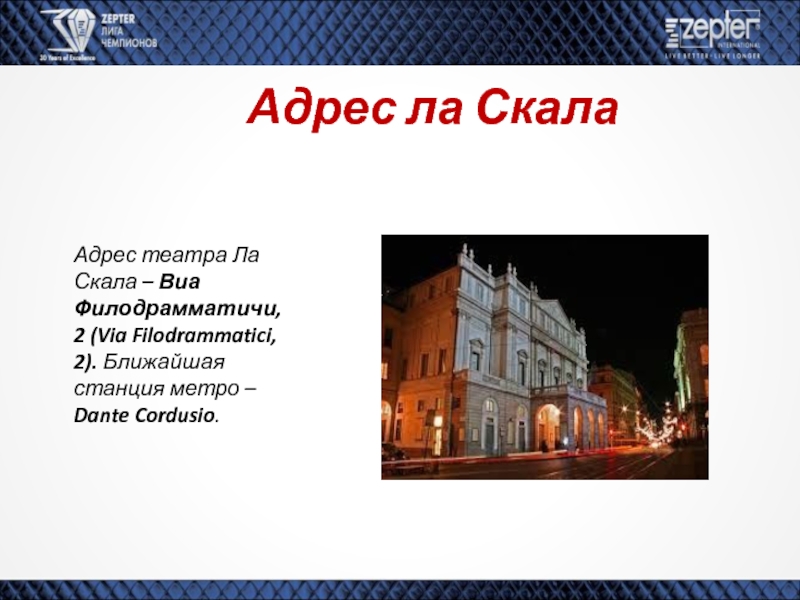 Слайд 26Адрес ла Скала